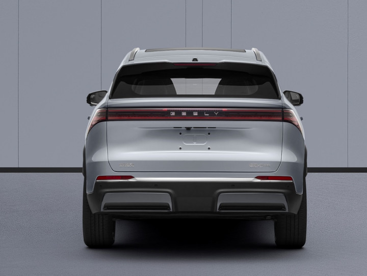 侧面延续了银河L7与博越L的凌厉运动风格,依然是溜背式车顶,包括车身腰线也没有调整,意味着白车身基本没改动。但尾灯进行了改变,去掉侧面的弯钩造型,更显简洁,同时贯穿灯组的内部也重新设计,直接变为横向灯组。此外后保险杠也改为更朴素平直的设计,弱化运动感。
